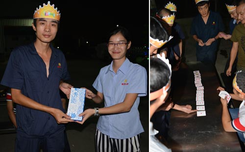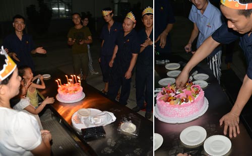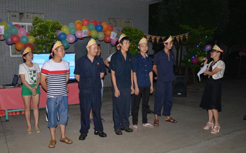 2015年9月12日晚,不銹鋼帶生產廠家鑫發金屬員工生日晚會隆重舉行。先是壽星及生日晚會舉辦人員陸續到場。壽星各自戴上壽星帽子,站在一起,然后相互握手,這樣就拉開了生日晚會的序幕。