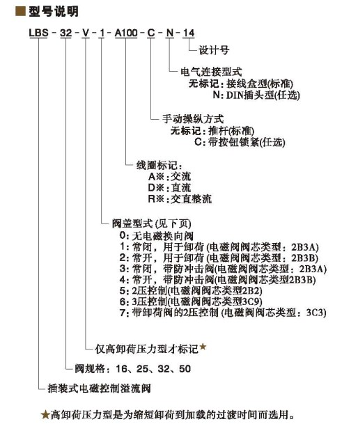 插裝式電磁控制溢流閥(LBS)型號說明